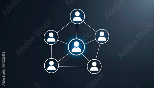 A small organizational chart style with people icons spaced at a moderate distance and connected by lines on a dark ton background.
