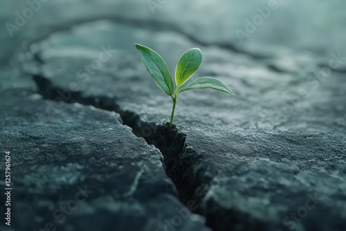 a small plant on a rock, the delicate green leaves growing from the cracks of the rock, creating a striking contrast between life and stone.