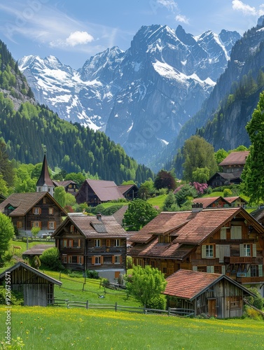 village, landscape, summer, alps, travel, nature, tour tourism, mountain, europa, alpine, house, scenery, view, rural, switzerland, vale, green, traditional, vacation, grass, town, countryside, swiss, european, panorama, outdoors, forest, scenic, meadow, beautiful, building, architecture, tree, sky, sunny, farm, blue, peak, panoramic, church, old, austria, chalet, idylli, holiday maker, spring, hiking, field, hill