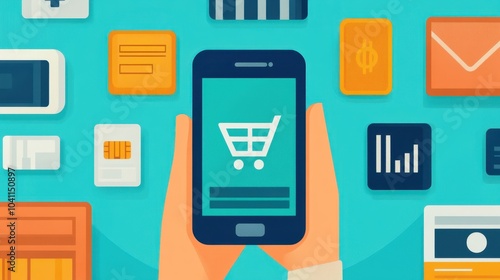 A smartphone displaying an e-commerce shopping cart interface, surrounded by various payment icons and mobile apps.