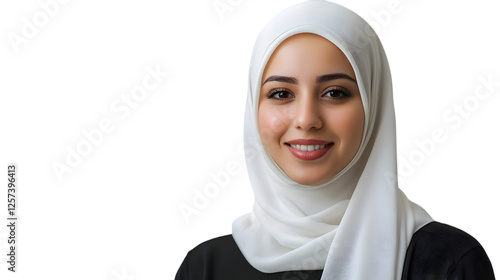 A Smiling Arab Middle Eastern Woman in White Hijab