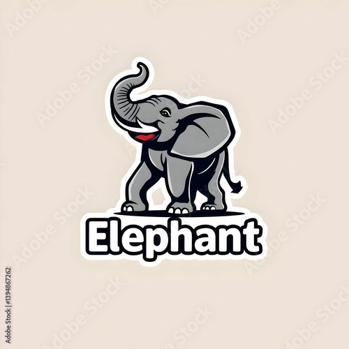 animal, mammal, elephant, trunk, ear, tusk, grey, white, black, outline, cartoon, smiling, happy, cheerful, cute, adorable, friendly, playful, joyful, standing, walking, paw, foot, ground, design, illustration, art, graphic, symbol, icon, image, logotype, sticker, label, badge, simple, clean, style, creative, isolated, background, shape, character, fun, element, drawing, representation, wildlife