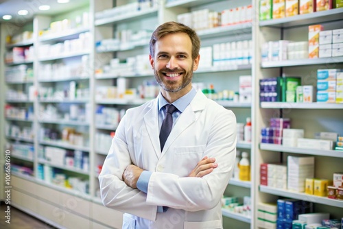 pharmacy, medicine, apothecary, professional, man, male, medication, store, health, chemist, shop, retail, apothecary, person, chemist's shop, business, drug, occupation, portrait, caucasian, happy, prescription, adult, doctor, profession, health care, uniform, treatment, smile, specialist, service, indoor, shelf, young, white, friendly, standing, pharmaceutical, care, 1, working, product, expertise, confident, pill, cosmetic, assistant, doc, labcoat