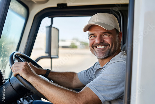 man, driver, trucking, transportation, delivery, transport, logistic, truck, vehicle, road, highway, travel, profession, occupation, work, job, career, commercial, freight, cargo, driving, journey, happy, smile, confident, professional, success, safety, service, industry, men at work, teamwork, team