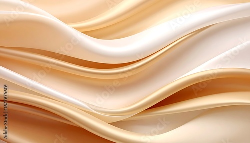 A smooth, flowing design featuring soft, elegant curves of light beige and off-white silk-like fabric.