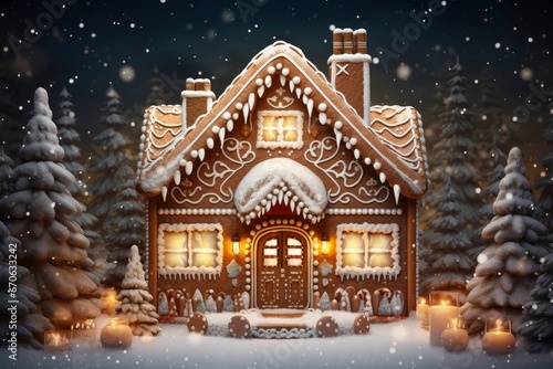 A Snowy Christmas House Scene with Festive Decorations and Cozy Ambiance Created With Generative AI Technology