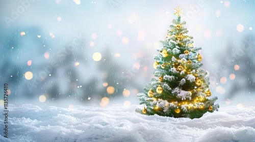 christmas, tree, snow, winter, holiday, decoration, ornament, light, pine, evergreen, festive, celebration, season, new, year, gift, december, joy, tradition, magic, sparkle, frost, nature, background, blur, white, blue, gold, green, gold, illumination, glistering, bright, beautiful, sparkling, idylli, dreamy, peaceful, serene