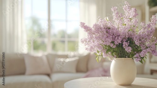 A snug living room scene with a pale sofa embellished with cushions and a vase of elegant flowers, creating a welcoming and cozy atmosphere