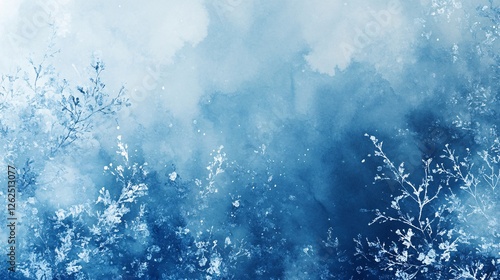 A soft blue watercolor background with intricate snowflakes, evoking a peaceful, frosty scene perfect for winter-themed designs.