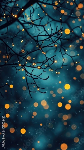 A soothing turquoise dark background showcases abstract Christmas tree branch silhouettes