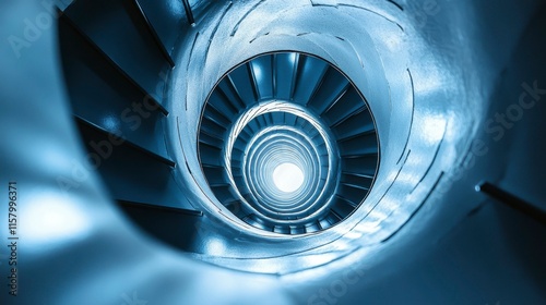 spiraling, staircase, stretches, glowing, vortex, its, edge, illuminated, soft, light, creating, sense, wonder, mystery, you, approach, swirling, center