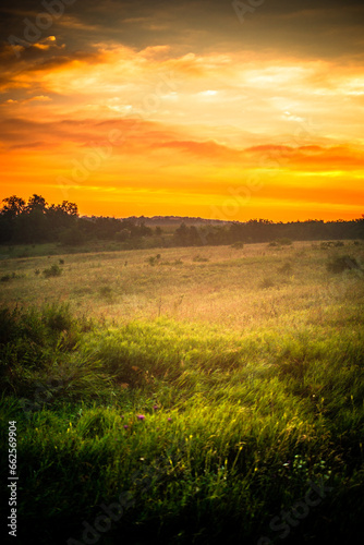 autumn, beautiful, countryside, sunrise, tree, sky, cloud, grass, flower, coniferous, trunk, branch, horizon, pink, orange, wispy, tall, wild, hazy, nature, landscape, beauty, morning, dawn, light, sun, ray, shadow, contrast, colours, scenery, view, rural, serene, peaceful, calm, tranquil, fresh, air, breeze, dew, sparkle, greenery, earthy, natural, yellow