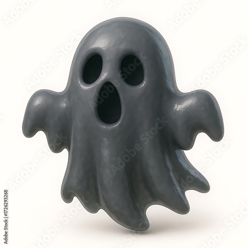 A spooky dark gray ghost character with a surprised expression, a 3D rendered illustration ideal for Halloween decorations and eerie celebrations, isolated on a clean white background