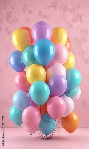 A stack of balloons in different pastel shades with a black outline at the top, balloons, festive embellishment