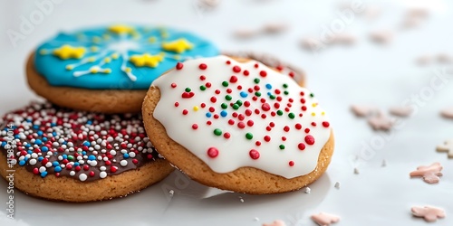 a stack of blue and white frosted cookies