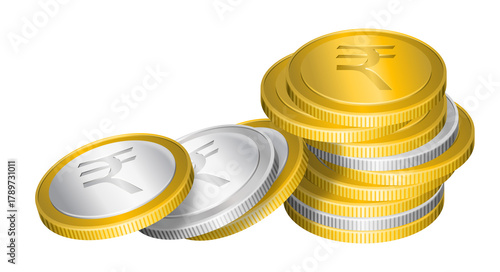 money, gold, coin, rupee, currency, symbol, signs, business, growth, investment, wealth, bank, cash, finance, stack, pile, illustration, three-dimensional, isolated, transparent, glossy, shiny, graphic, india