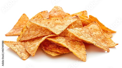 A stack of tortilla chips on a clean white surface, great for photography or design projects