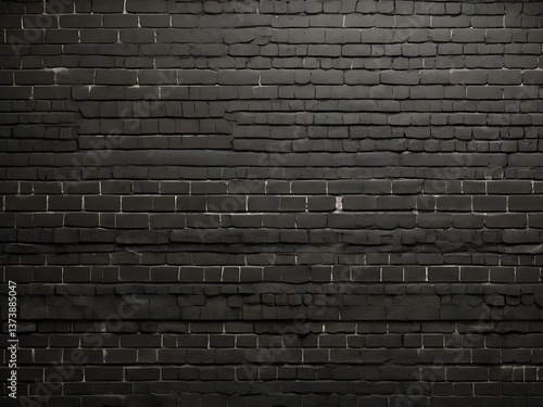 A stark, brooding black brick wall, a testament to time and urban grit, subtly textured with shadows and worn mortar.