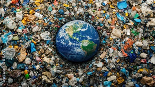 A stark image of Earth encircled by debris, highlighting the environmental crisis and the urgent call for awareness and action in the face of climate change.