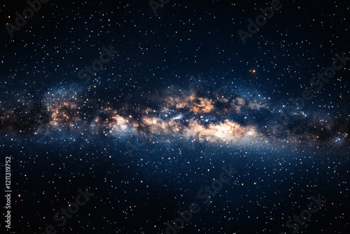 A starry night sky featuring a dense cluster of stars spread across the dark blue expanse