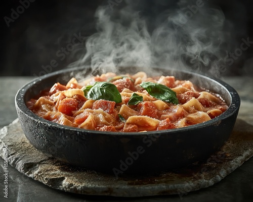 pasta, tomatoes, sauce, basil, cheese, hot, steam, food, dish, italian, cooking, delicious, eatery, italian food, hearty, dinner, receipe, plate, bowl, steaming, fresh, savoury, crockery, cookery, healthy, alimentary, dinnerware, italian cuisine, appetising, comfort food, image, closeup, photo, kitchen, food photography, dark background