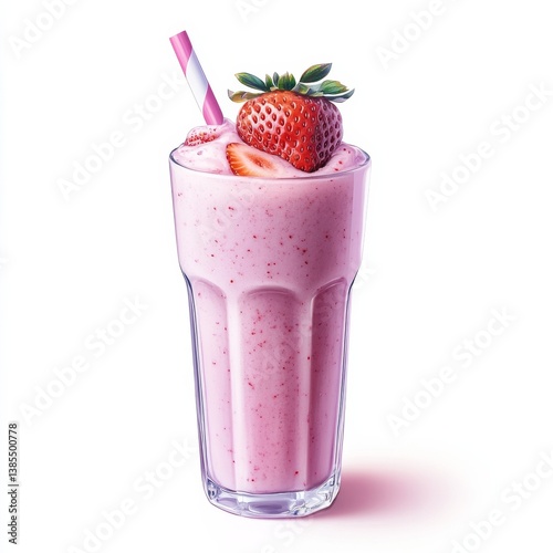 a strawberry milkshake, magical realism painting, ethereal glowing elements, surreal atmosphere, isolated on white background