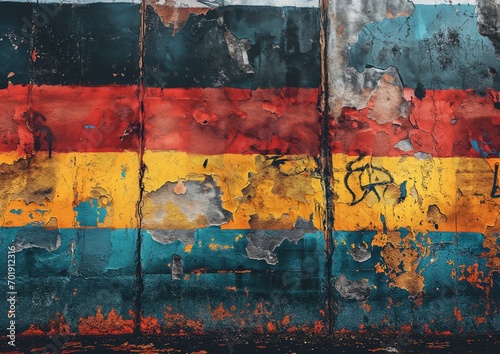 A street art-inspired image of the German flag, with graffiti-style elements and vibrant colors. The