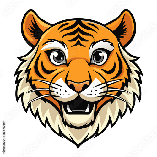 a striking illustration of a tiger's mascot head, capturing its fierce and majestic essence. The tiger features a detailed depiction with vibrant orange and black stripes, vector illustration