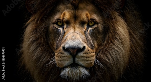 lion, animal, mammal, predator, cat, wildlife, carnivore, africa, nature, portrait, face, head, fur, mane, eye, yellow, gaze, powerful, strong, regal, king, closeup, detail, texture, background, dark, shadow, light, wild, beast, dangerous, intense, expression, masculine, apex, hunter, gold, brown, species, wilderness