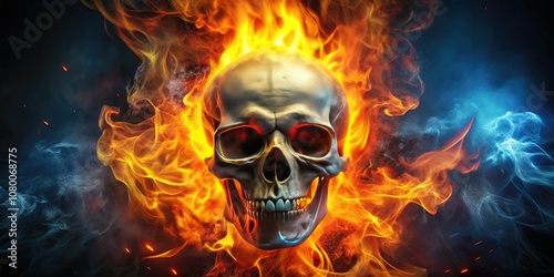 A striking skull engulfed in flames with an alpha channel, ideal for innovative designs, digital art, Halloween visuals, and bold graphic projects.