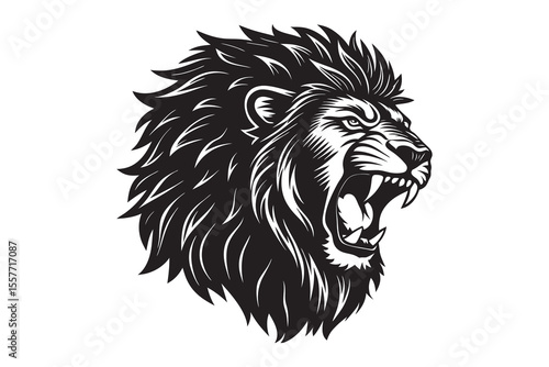 lion, vector, illustration, head, wild, design, mascot, tattoo, art, animal, graphic, roaring, king, face, strength, power, emblem, predatory, big cat, jungle, wildlife, creative, digital, element, icon, symbol, identity, sport, team, gaming, apparel, logotype, black, white, outline, detailed, abstract, fierce, modern, artistic, predator, hunter, expressive, majestic, bold, dynamic, silhouette
