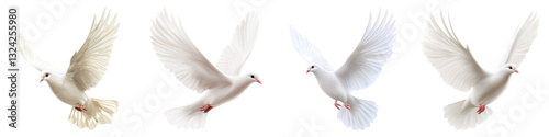 A stunning capture of white doves in flight, symbolizing peace and freedom.