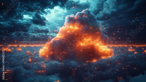 A stunning digital artwork of a fiery cloud illuminated by vibrant colors against a dramatic sky. Perfect for fantasy themes.