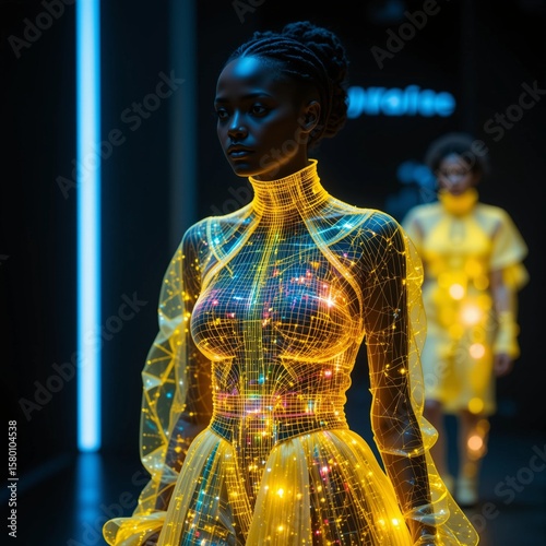 futuristic, glow, model, outfit, creative, design, art, bright, neon, technology, style, elegance, runway, showcase, light, detail, beauty, optical, texture, expression, emotion, modern, unique, theme, shine, colours, semitransparent, innovation, imagery, culture, chic, functional, form, fluid, stylish, playful, performance, atmosphere, movement, energy, artistry, life events, special, shoot, environment, appearance