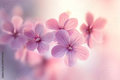 A stunning floral design featuring delicate pink and purple blooms, set against a soft, ethereal background that enhances their beauty.
