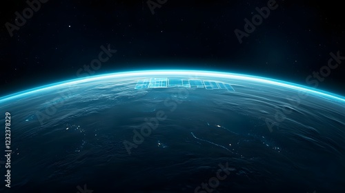 A Stunning Glimpse of the Glowing Earth from Space with Futuristic Elements and Starry Background. Visualization Practice Concept