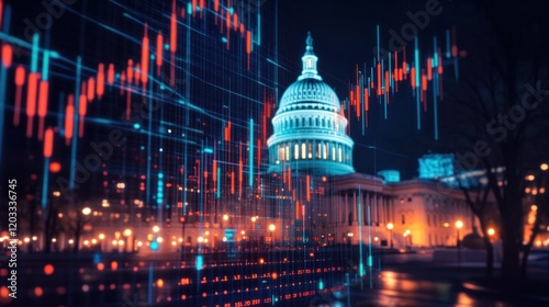 holographic, forex, chart, glowing, trade, line, trend, capitol, dome, night, finance, technology, investment, analysis, modern, innovation, datum, urban, skyline, light, economy, market, visualisation, strategy, software, digital, abstract, aglow, three-dimensional, vibrant, colours, futuristic, business, stock, ai, prediction, architecture, city landscape, performance, network, connection, global, currency