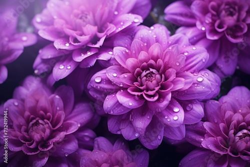 A stunning image of purple flowers glistening with water droplets. Perfect for adding a touch of beauty to any project or design