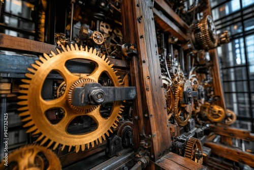 mechanical, gear, gold, wooden, assembly, design, traditional, advanced, harmony, structure, blend, material, craftsmanship, integrated, technology, engineering, clockwork, component, ornate, intricate, construction, system, artistic, vintage, precision, craft, luxury, mechanism, technical, innovation, invention, manufacture, cog, woodwork, automaton, device, interlocking