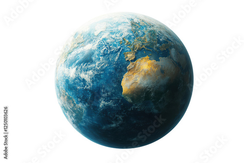 A stunning, realistic depiction of Earth showcasing its vibrant oceans, lush landmasses, and swirling clouds, symbolizing the beauty of our planet.