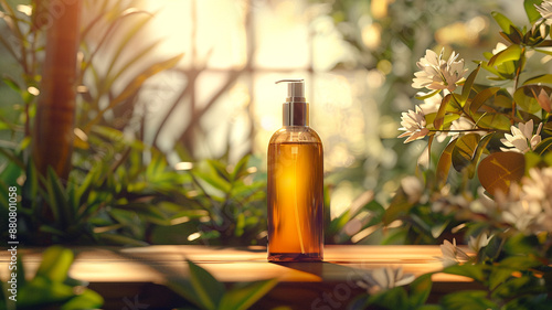 A stylish background with a natural cosmetic skincare bottle. The product presentation. Conceptualization of beauty and body care products.