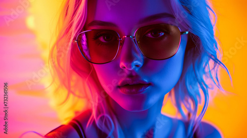 A stylish girl with a human face strikes a pose, her cartoon sunglasses adding a touch of playfulness to the photo