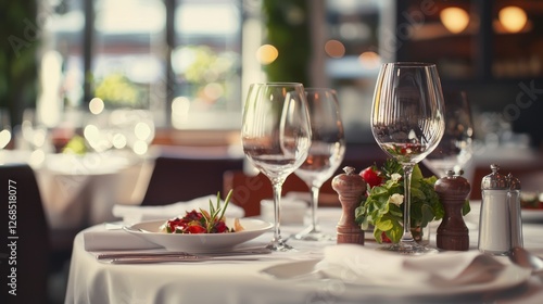 stylish, modern, eatery, menu, placed, table, elegant, glasses, dinner, wine, drink, wedding, celebration, party, plate, setting, food, dining, wine glass, napkin, decoration, alcohol, champaign, banquet, cutlery, fork, goggles, nobody, lunch, knife