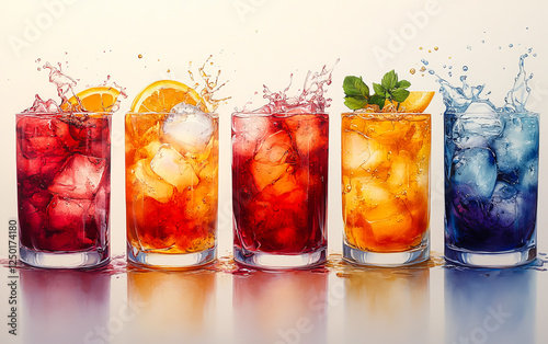 A stylish poster featuring vibrant cocktails in elegant glasses, perfect for interior design, banners or social media. Aesthetic, refreshing, and inviting.