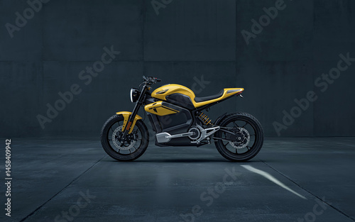 motorcycle, electric, vehicle, transportation, yellow, modern, design, power, studio, concrete, innovation, technology, futuristic, clean, energy, mobility, transport, urban, lifestyle, style, sleek, road, ride, machine, wheel, engineering, speed, performance, travel, automotive, eco, friendly, zero, emission, sustainable, alternative, personal, advanced, elegance, polished, professional, isolated, background, contemporary