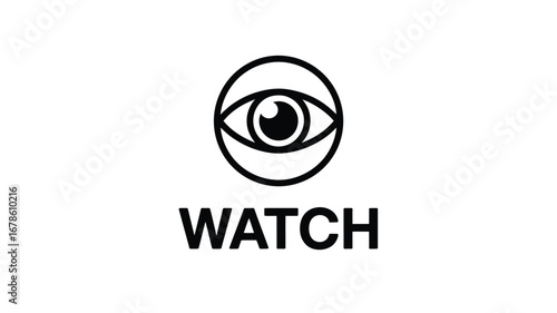 A stylized eye within a circle above the word watch in bold black font against a white background
