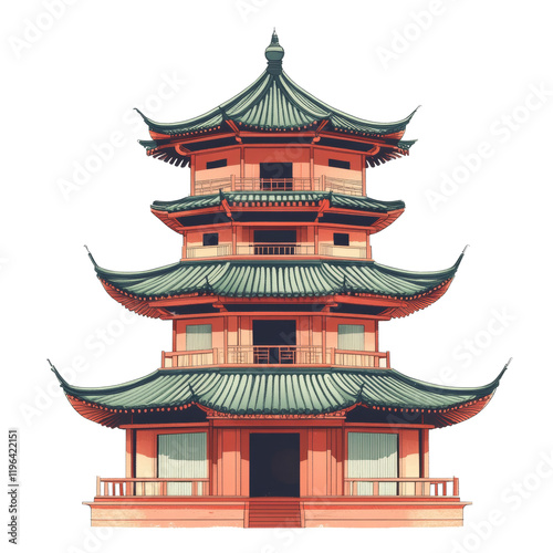 pagoda, architecture, asian, building, chinese, japanese, korean, temple, design, illustration, structure, multi, story, level, roof, eaves, tiered, traditional, oriental, ancient, style, east, asia, culture, heritage, history, historical building, landmark, religious, spiritual, serene, peaceful, calm, beauty, aesthetic, art, artwork, image, graphic, drawing, colourful, red, green, wooden