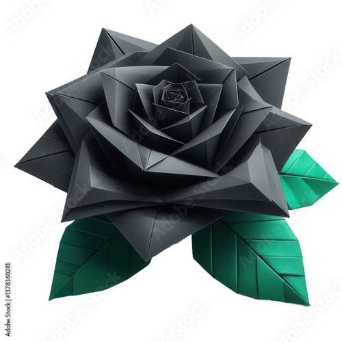 stylised, origami, black, rose, green, leaf, transparent, background, paper, craft, folded, floral, artistic, elegant, minimal, geometric, nature, flower, symbolic, creative, unique, modern, decorative, hand-made, intricate, design, sharp, sleek, sophisticated, detailed, isolated, digital, clean, abstract, aesthetic, realistic, botanical, smooth, refined, minimalistic, contemporary, chic