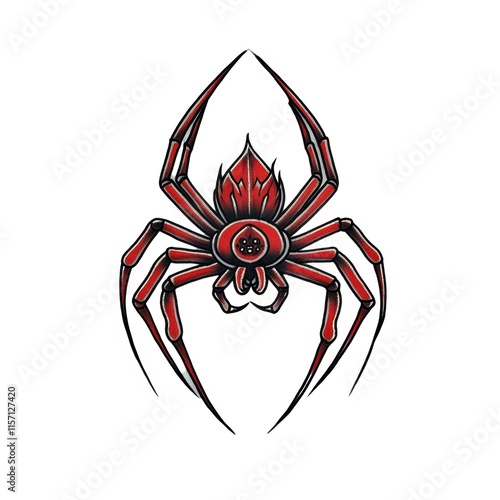 spider, red, black, graphic, design, art, illustration, creature, insect, nature, predator, anatomy, web, fang, leg, symmetry, detail, bold, vector, silhouette, venom, arachnid, creepy, crawl, wildlife, fantasy, decorative, sharp, outline, gothic, eerie, sharpness, pattern, fierce, dark, elegant, striking, menacing, unique, artistic, visual, tattoo, emblem, symbol, horror, entomology