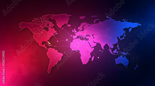 A stylized world map is shown, rendered in shades of pink and blue with connecting lines suggesting global networks.